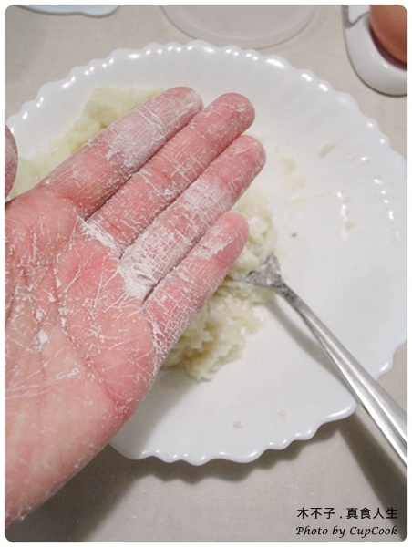 ▲ 5.裹粉完畢的馬鈴薯泥在手上稍作整型。
