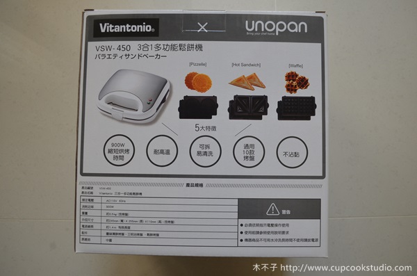 在還沒找到烤盤的收納容器前,vitantonio vsw450包裝使用的紙盒是很棒的烤盤收納設計,體積小,重量輕,攜帶方便。只是使用完畢後務必讓烤盤烘乾,放入塑膠套再放入紙盒。