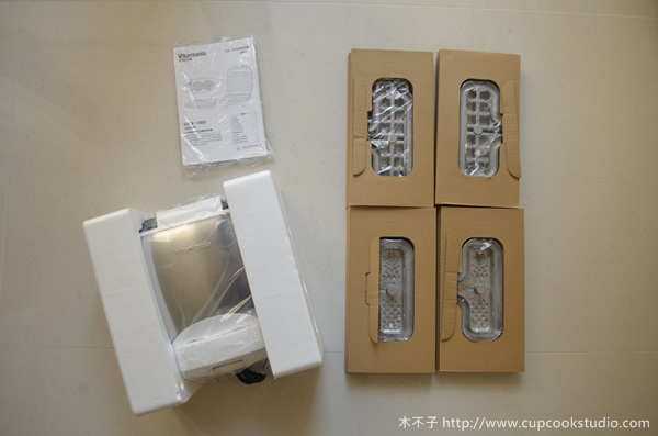 vitantonio vsw450 鬆餅機紙盒內有多層防止碰撞的包裝。